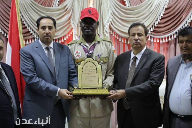 كرم معالي وزير الشباب والرياضة الأستاذ نائف صالح البكري اليوم، قائد مفوضية الكشافة بمحافطة المهرة القائد محمد علي رزق "أبو سليم" بدرع الوزارة وذلك