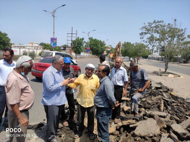 دشن مدير عام صندوق النظافة والتحسين بالعاصمة عدن المهندس / قائدراشد انعم ومديرعام مديرية المنصورة الاستاذ /احمدعلي الداؤودي بخط ريمي بمديرية المنصورة