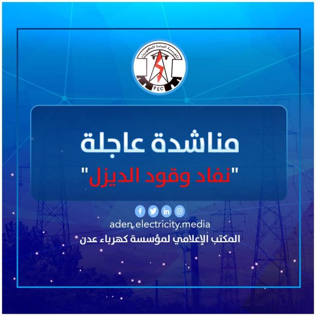 الوقود المتبقي من مادة الديزل لايكفي لأكثر من يومين فقط !!!، والجميع حالياً يتنصل عن تحمله المسؤولية، والمراد من ذلك أن تكون كهرباء عدن بوجه المدفع!!!