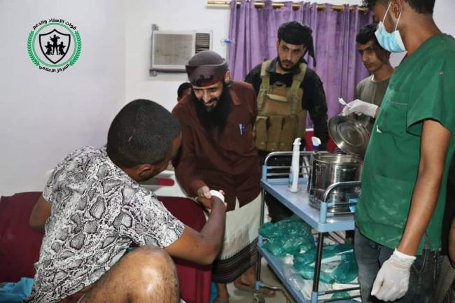 تفقد العميد محسن الوالي قائد قوات الأحزمة الأمنية يرافقه العقيد اكرم ابو البراء قائد اللواء الاول "أ"عمالقة عصر اليوم احوال جرحى حادثة قاعدة العند الجوية من
