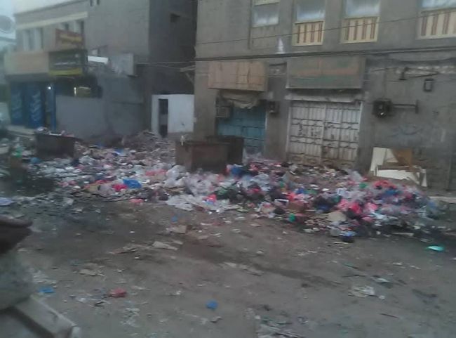 شكا أهالي احياء الهاشمي بمديرية الشيخ عثمان تكدس مخلفات القمامة المتكدسة ومياه الصرف الصحي حيث لم يتم رفعها القمامة أو شفط مياه الصرف حتى كتابة هذا الخبر.