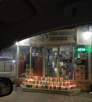 نشر ناشطون يمنيون في امريكا صورة من باب المحل الذي قتل فيه مغترب يمني والحزن يخيم على الشارع الذي يعمل فيه.
