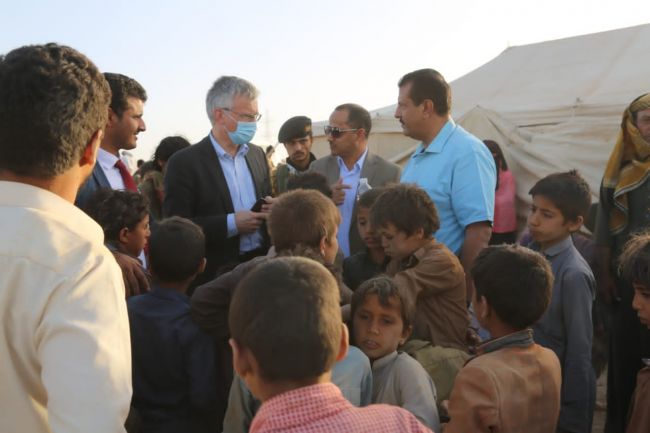 تفقد المبعوث السويدي إلى اليمن بيتر سمبني ووكيل محافظة مأرب الدكتور عبدربه مفتاح الأوضاع الإنسانية والمعيشية للنازحين في مخيم السويداء غرب المحافظة واطلعا على آثار القصف الصاروخي