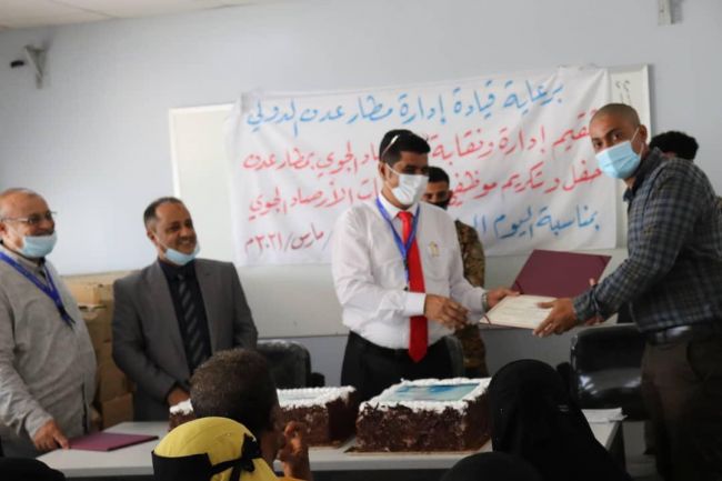 كرمت الادارة العامة لمطار عدن الدولي ممثلةً بالمدير العام عبدالرقيب العمري صباح اليوم موظفي إدارة الارصاد بمطار عدن الدولي بمناسبة يوم الارصاد العالمي والذي يوافق 23 آذار/