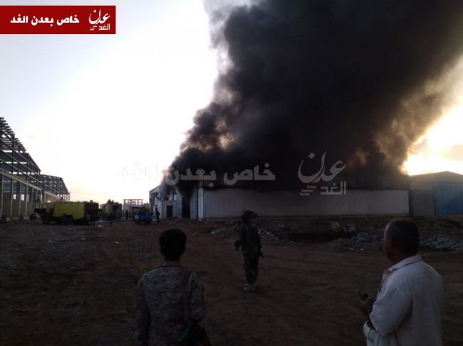 نشب حريق هائل في أحد الهناجر الواقعة في منطقة المشروع بمديرية الشيخ عثمان.