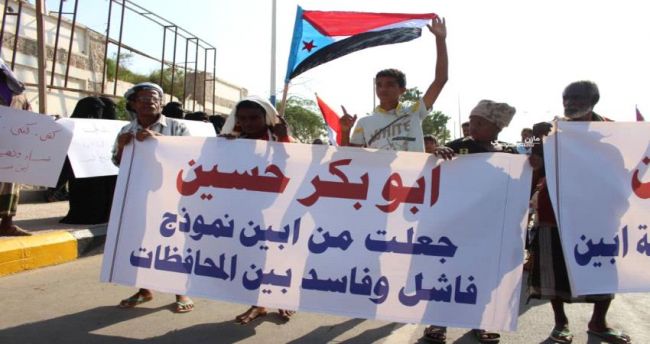 أكدت الفعاليات الاحتجاجية الشعبية والمقاومة الجنوبية في محافظة أبين على تواصل التصعيد حتى إقالة المحافظ الذي وصفته بالفاسد.