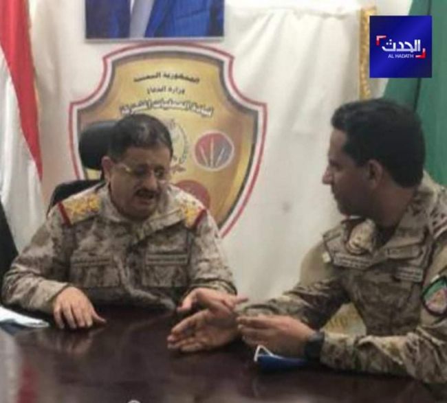 استقبل وزير الدفاع الفريق محمد المقدشي، اليوم، بمدينة مأرب المتحدث الرسمي باسم قوات التحالف العميد تركي المالكي، بحضور رئيس هيئة الأركان العامة الفريق صغير بن عزيز.