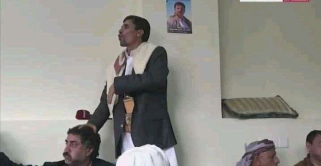 ظهر القيادي ميلشيا الحوثي ابو علي الحاكم ، متكئا على راس الشيخ حنين قطينه اثناء حديثة لمجموعه مشا?خ لتحشيد مقاتلين.