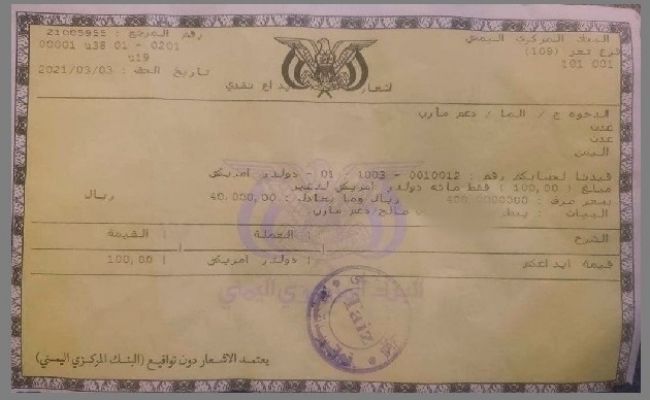 كشفت وثيقة رسمية صادرة عن فرع البنك المركزي اليمني، في تعز، عن استيلاء البنك على نصف مبالغ المتبرعين لدعم صمود جبهات الشرعية بمحافظة مأرب.