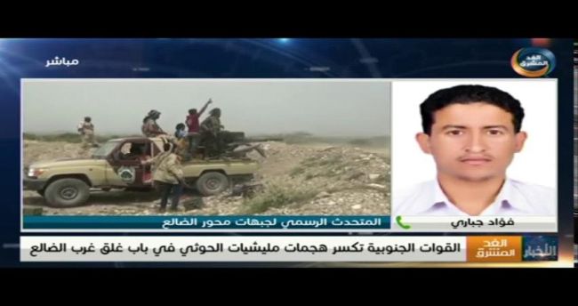 أفاد المتحدث الرسمي لجبهات محور الضالع, فؤاد جباري,عن ابرز التطورات العسكرية في جبهة الضالع, وقال.. "يحدث الآن تبادل متقطع للقصف المدفعي بين وحداتنا والقوات المشتركة وبين المليشيات الحوثية ,