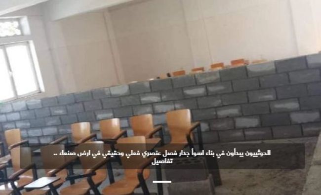 تداول ناشطون في مواقع التواصل الاجتماعي صوراً لبناء جدران فاصلة بنتها عناصر تابعة لمليشيا الحوثي داخل القاعات الدراسية بجامعة صنعاء، للفصل بين الطلاب والطالبات في القاعات الدراسية