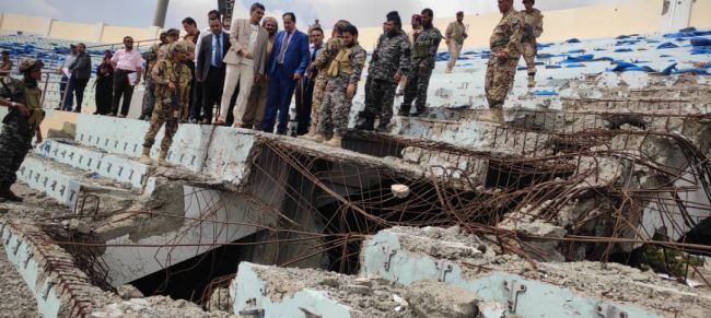 تفقد وزير الشباب والرياضة نايف صالح البكري، اليوم، ومعه عدد من قيادات الوزارة، الاضرار التي لحقت بملعب 22 مايو بمدينة الشيخ عثمان بالعاصمة المؤقتة عدن .