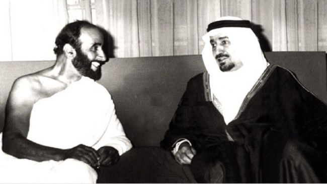 وبينت الصورة الملك خالد أثناء استقباله الشيخ زايد آل نهيان في أحد مواسم الحج، حيث ظهر مؤسس