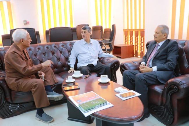 التقى رئيس المؤسسة العامة للتامينات الاجتماعية الاستاذ أحمد صالح سيف بمكتبة بالعاصمة المؤقتة عدن، اليوم، رئيس الغرفة التجارية والصناعية بعدن الشيخ ابوبكر باعبيد، بحضور