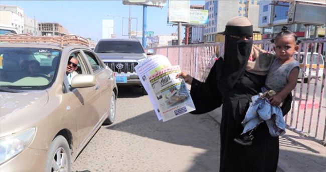 مبكرًا تصل يسرى عبده (38 عامًا) برفقة طفلتيها إلى جولة كالتكس في مديرية المنصورة بمحافظة عدن، جنوبي اليمن. تفرش عند السابعة صباحًا صحفها على الرصيف لبيعها للمارة