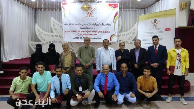 نظّم مجلس أمناء مؤسسة بوابة عدن للتعليم والتنمية حفلاً لتكريم الطلاب المتفوقين الدارسين في كليات جامعة عدن على نفقة المؤسسة وذلك تزامنا مع الذكرى الرابعة لانطلاق