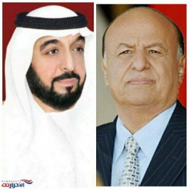 ”هادي” يوجه رسالة إيجابية الى ”الامارات”وجه رئيس الجمهورية عبد ربه منصور هادي، اليوم الثلاثاء، رسالة إيجابية الى دولة "الامارات" العربية المتحدة.و في برقيات تهان باليوم الوطني