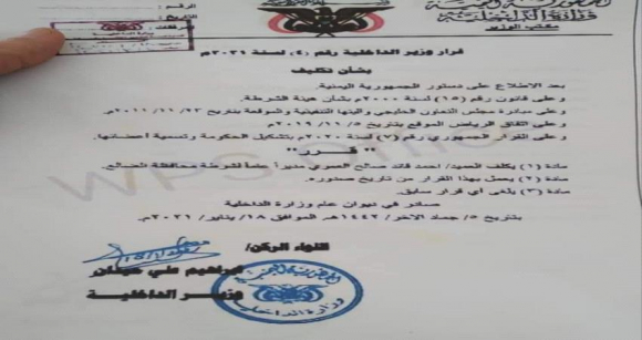 وزير الداخلية ايراهيم حيدان يكلف العميد احمد العمري مديرا لشرطة الضالع " قرار"