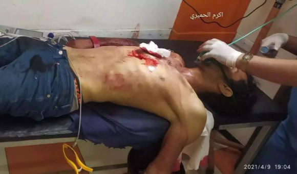 قناص حوثي يجرح شاب في تعز وهو يصلي بمنزله .. صورة