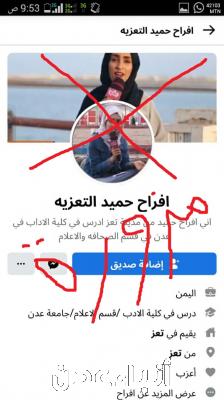 وعليه فاني اخلي مسؤوليتي عن ما ينشربأسمي وصوري في الصفحات المزورة في الفيسبوك وأيضا في التيك توك والانستجرام وغيرها من المواقع لأني لأمتلك أي حسابات عليها كما أرجو من الجميع التنبه من منتحل شخصيتي والذي يقوم بطلب مال باسمي ويسئ لشخصي ومبادئي والاساءة لجهات سياسية في اليمن وادعوهم الى عدم التجاوب مع صاحب هذا الحساب المزور .