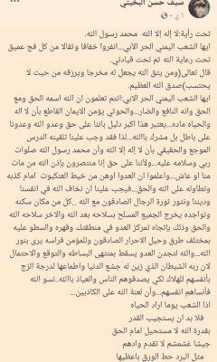 وقالت إن اعتقال العميد البخيتي، تم من قبل قائد الشرطة العسكرية، المعين من قبل الحوثيين.
