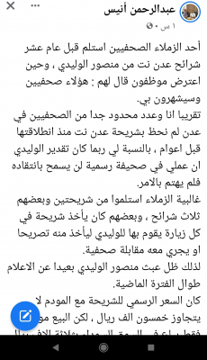 من صفحة الصحفي عبدالرحمن انيس في فيسبوك