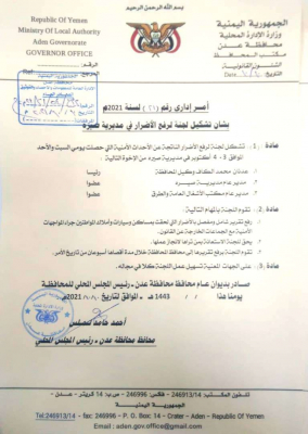 المحافظ أحمد لملس يشكل لجنة برئاسة وكيل المحافظة لشؤون التنمية المهندس عدنان الكاف وعضوية كلا من..