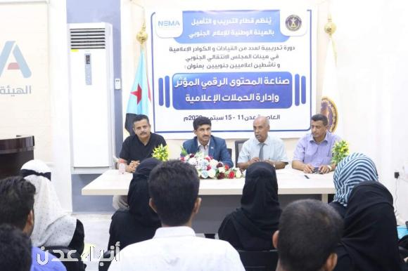 اختتم قطاع التدريب والتأهيل بالهيئة الوطنية للإعلام الجنوبي، اليوم الأربعاء، بالعاصمة عدن، الدورة التدريبية في "صناعة المحتوى الرقمي وإدارة الحملات الإعلامية" لعدد من القيادات والكوادر الاعلامية لهيئات المجلس الانتقالي الجنوبي ونشطاء اعلاميين جنوبيين، برعاية كريمة من الرئيس القائد عيدروس قاسم الزُبيدي رئيس المجلس الانتقالي الجنوبي.