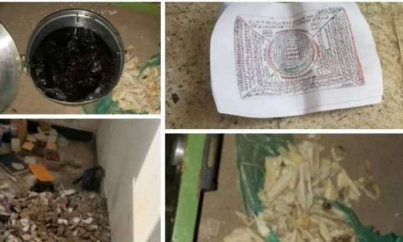 ونشر مقاطع فيديو، للمشعوذ وهو يجهز سحرًا لإحدى ضحاياه، كما نشرت العديد من الصور لما عثر عليه داخل المنزل.