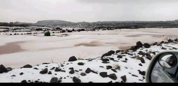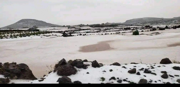 اكتست مناطق شمال صنعاء باللون الابيض نتيجة تساقط الثلوج بكثافة.