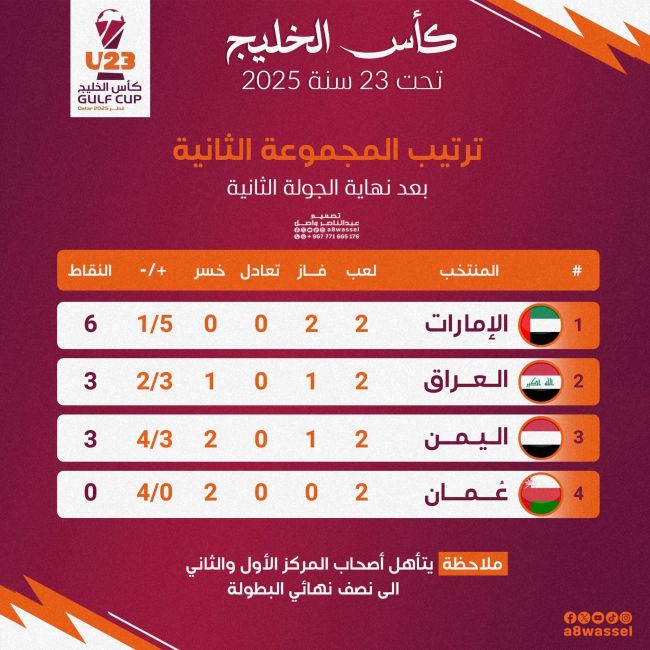 حسابات معقّدة تحسم بطاقات التأهل في المجموعة الثانية بخليجي تحت 23 سنة