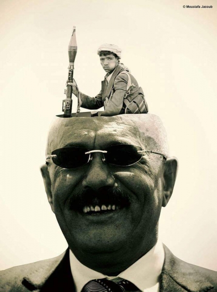 فاجأ الفنان السوري "مصطفى يعقوب " الرئيس اليمني السابق علي "صالح " برسمه لوحة صادمة وضح فيها الحقيقة الموجودة في رأس "صالح" والعنف الذي يتخيله .